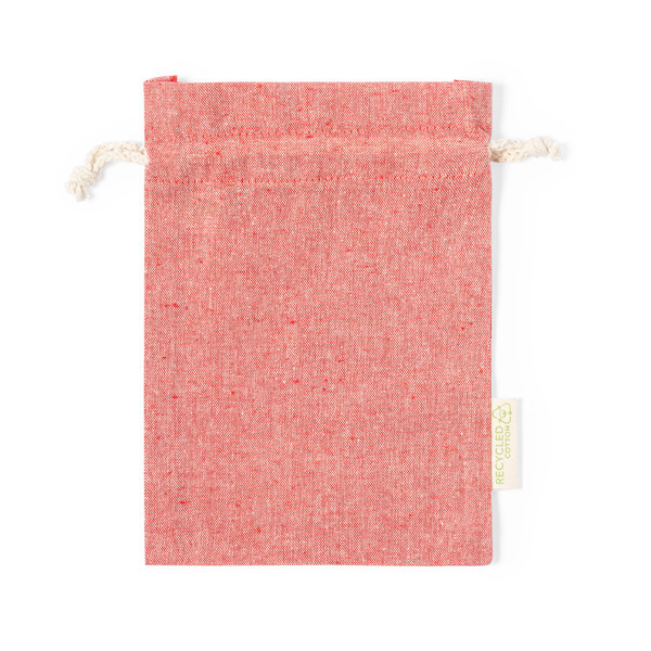 Eco-friendly bag made in resistant recycled cotton material of 120g/m2. GRS (Global Recycled Standard) certification, guaranteeing the recycled origin of the material used to manufacture the product. Cotton drawstring closure and stitched finish, including outside label with recycled cotton logo.