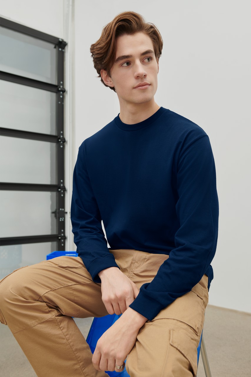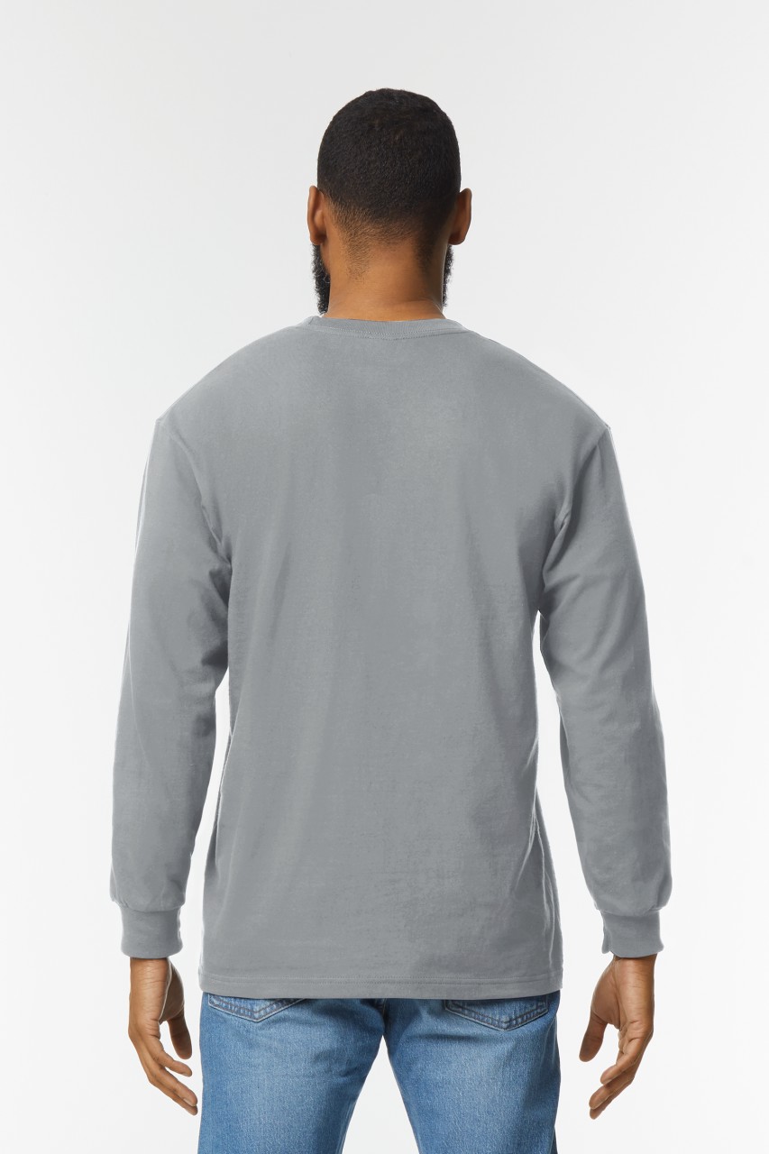 100% Ring Spun Cotton, 203.0 G/SqM (White 193.0 G/SqM) Made with our soft ring spun cotton, Hammer's high stitch density fabric provides a heavier weight, smooth printing surface Classic width, rib collar Taped neck and shoulders for comfort and durability Rib cuffs Modern classic fit, side seamed body High-performing tear-away label; transitioning to recycled material The model is transitioning from a side-seamed to a tubular fit, and our current stock includes both versions Cotton/Polyester mix for some colors