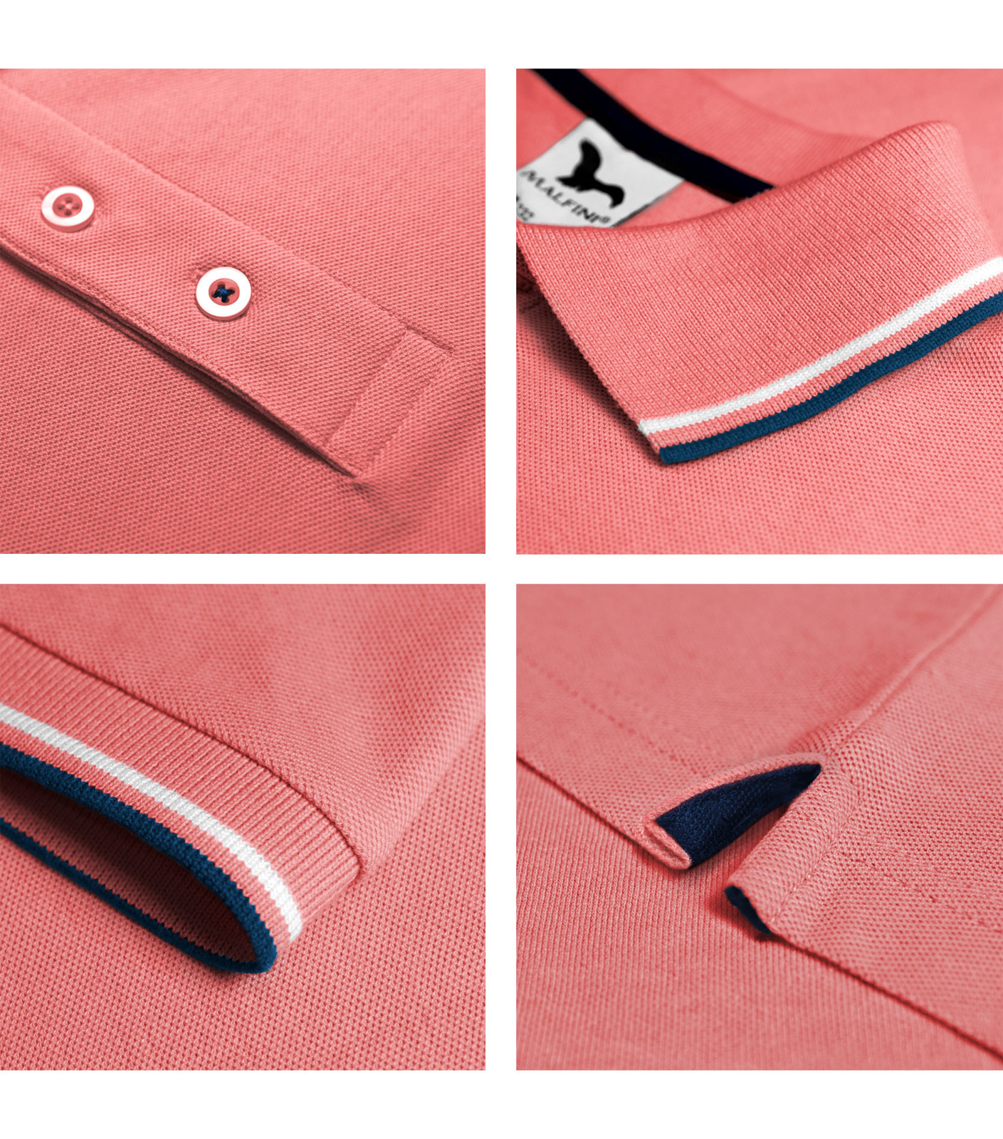 Cut with side seams, 1:1 rib knit collar, 2 contrast stripes on sleeve hems and collar, placket with 3 buttons in the shell fabric colour, last button sewn in contrast colour thread, inner neckline with a contrast tape, fixing shoulder seams, slits in side seams with a contrast tape, second quality goods, claims will not be considered for goods sold as second quality