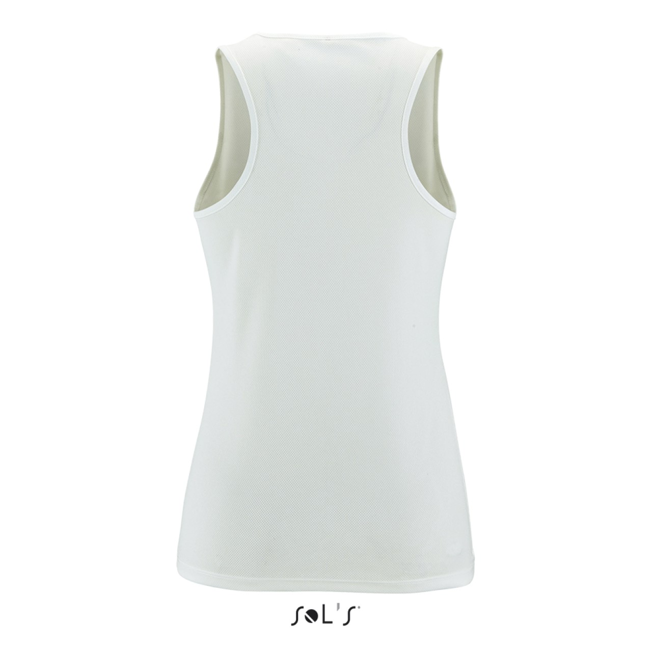 Quality 100% breathable polyester Style Cut and sewn Close-fitting cut Racerback Binding at collar and armholes