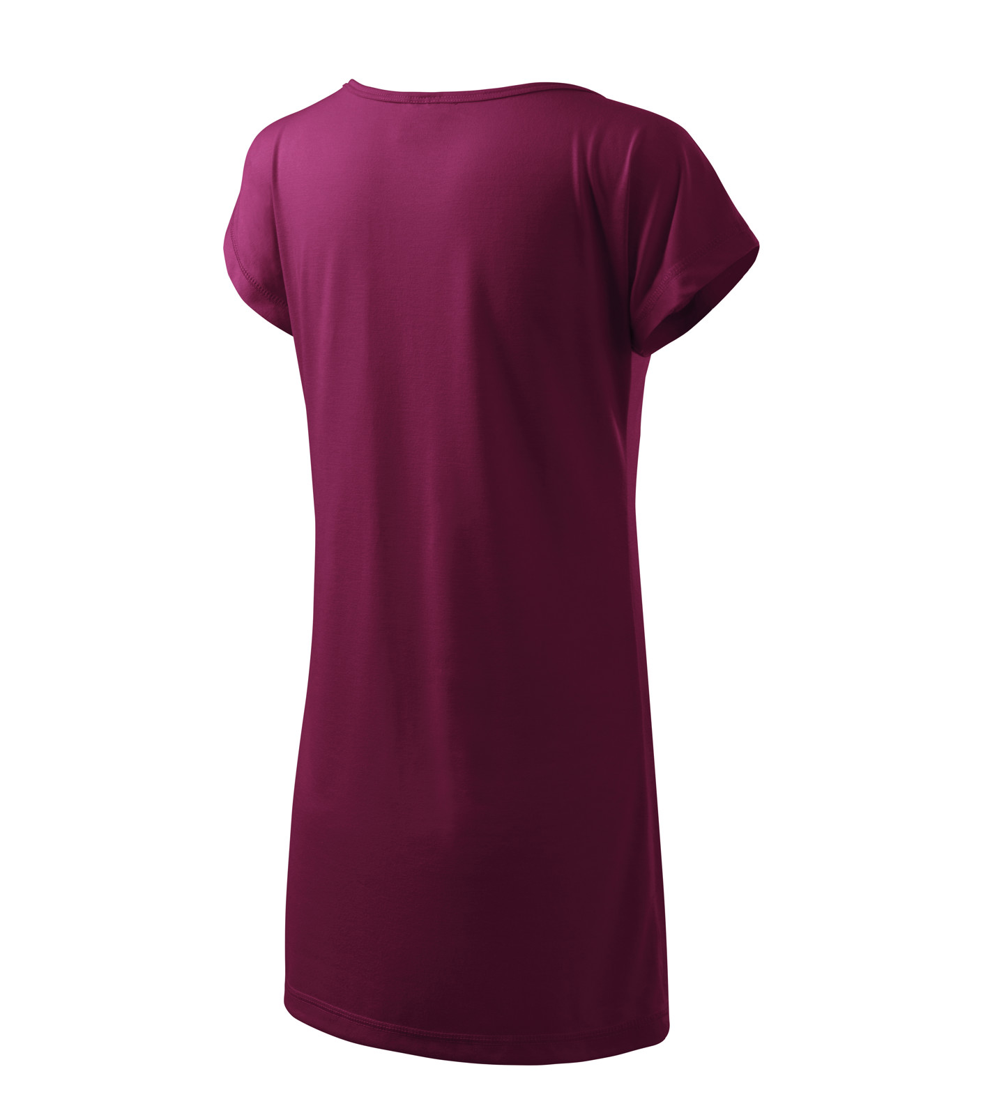 Loose cut with side seams, lenght below hip line, boat neckline, neckline trimmed with shell fabric, kimono sleeves, drying horizontally recommended