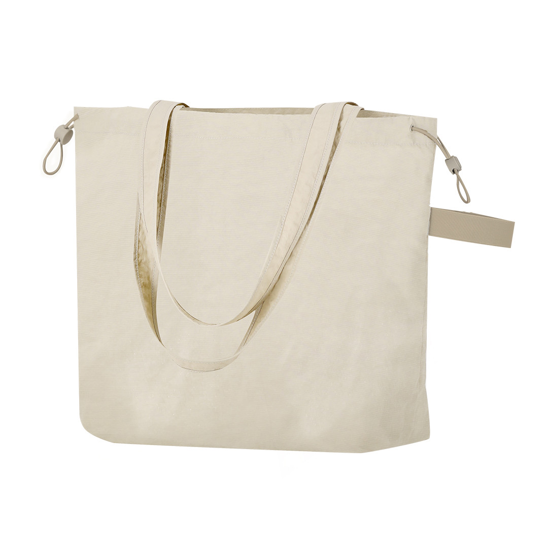 Bag made of soft and light Soft Nylon of 135g/m2. With inner pocket and adjustable drawstring closure. Long handles of 70 x 3.5 cm. Includes an elastic strap for easy folding.